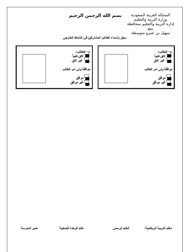 استمارة مشاركة طالب في النشاط الرياضي