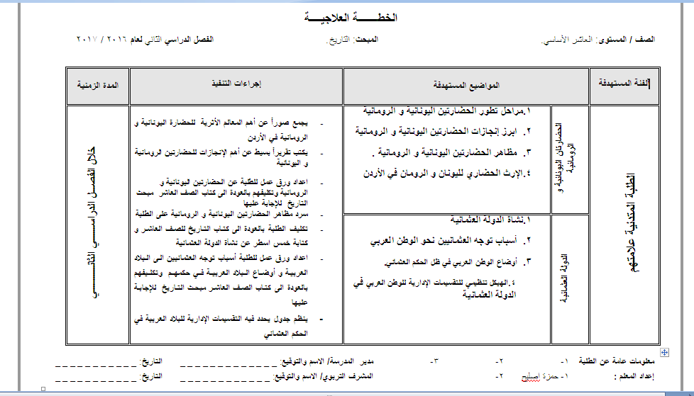 خطة علاجية لمادة التربية الاجتماعية والوطنية